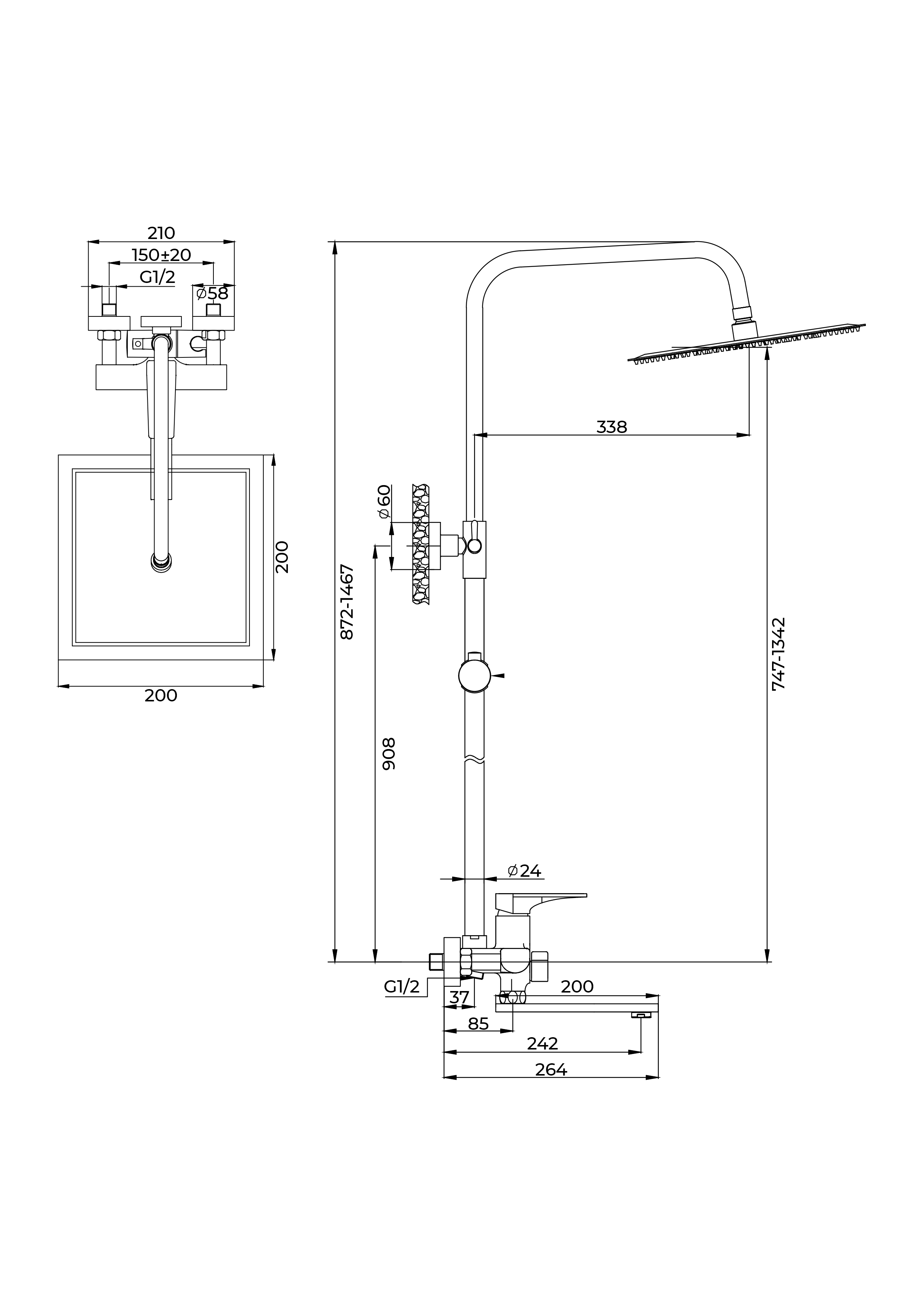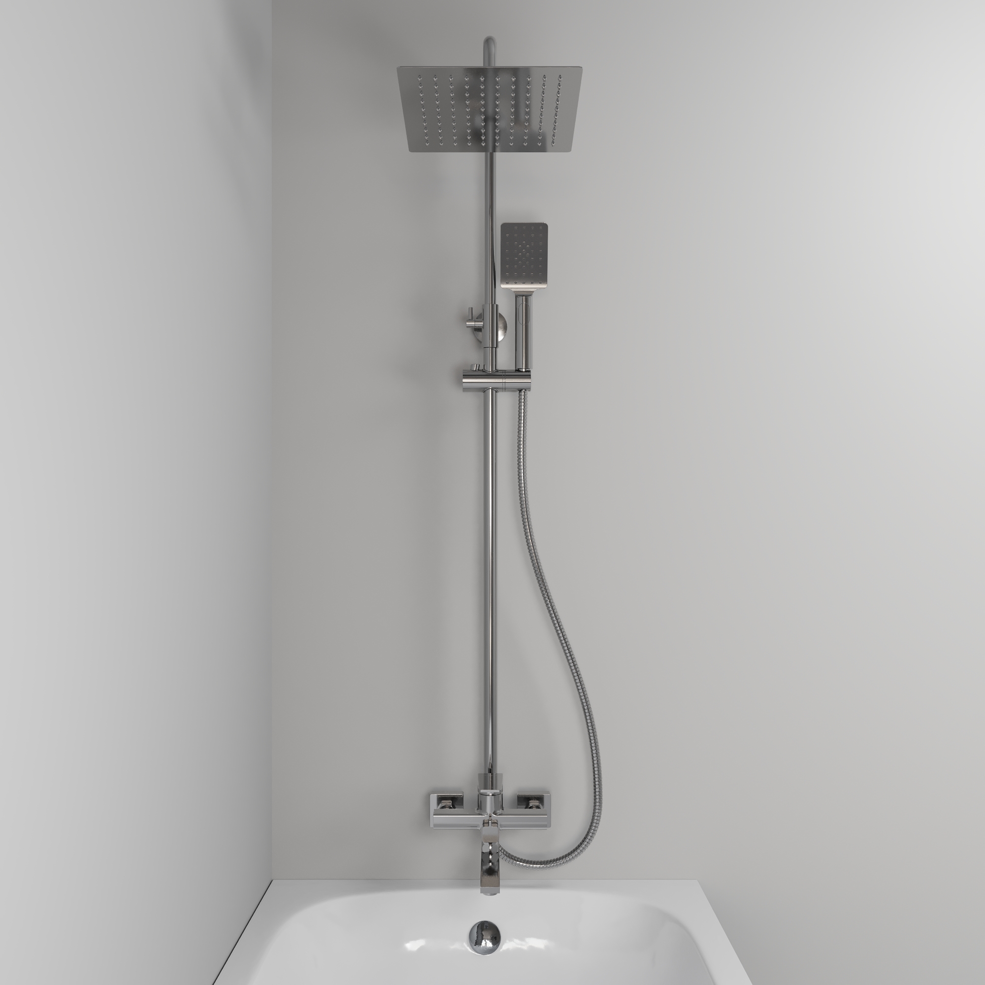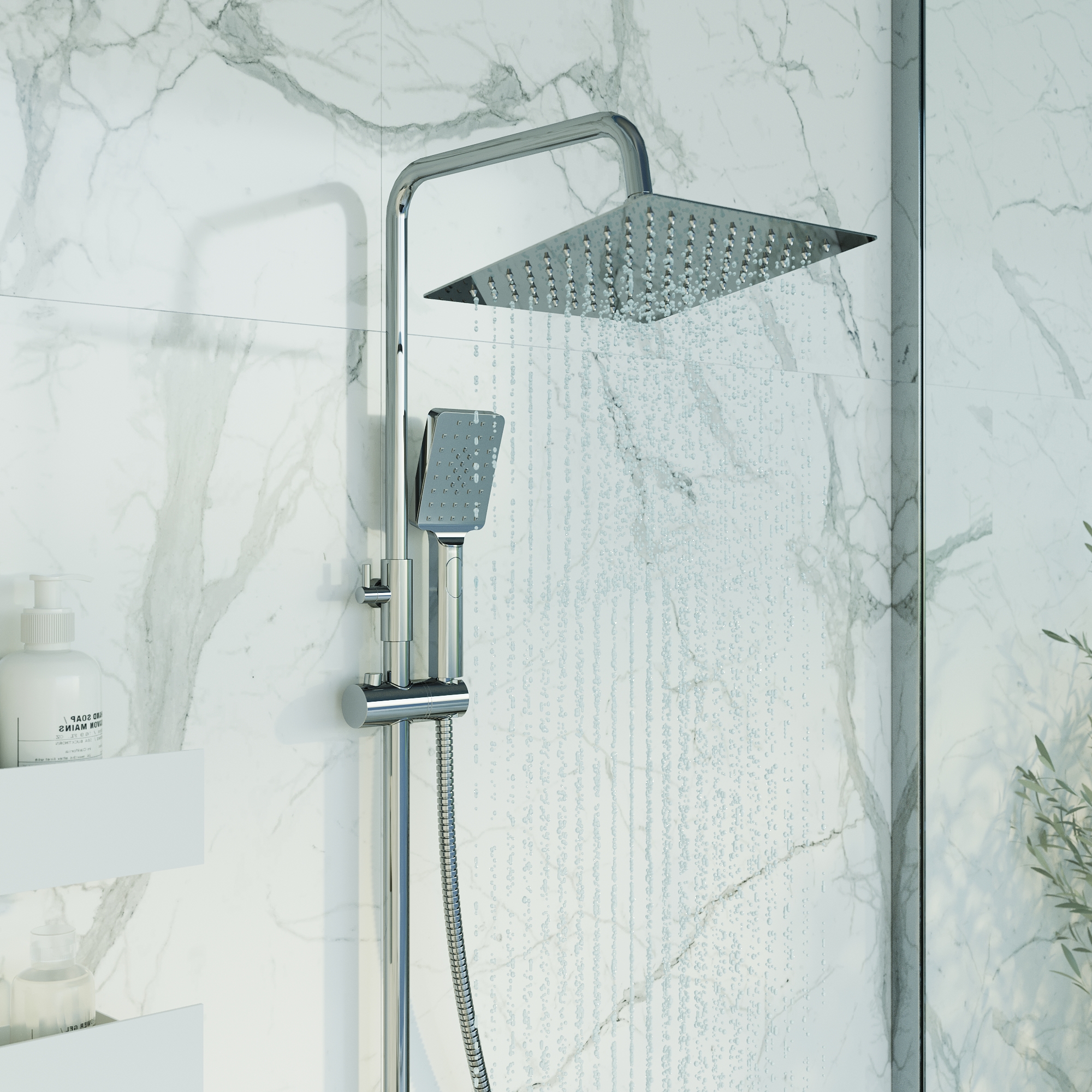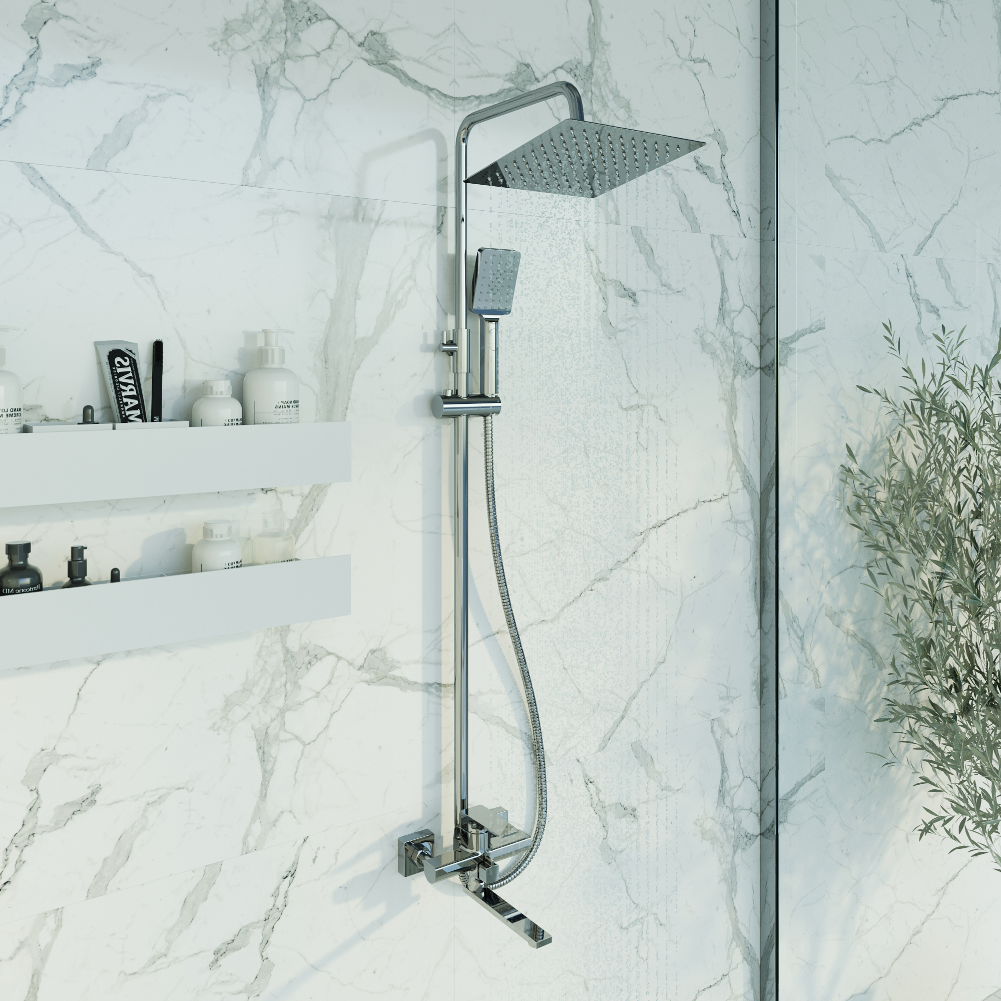 Переключатель с керамическими пластинами с функцией gentle swich, 3-функциональная лейка с функцией легкой очистки, Душевой шланг 1,5 м, Регулируемая по высоте полочка для душевых принадлежностей, Металлическая рукоятка |