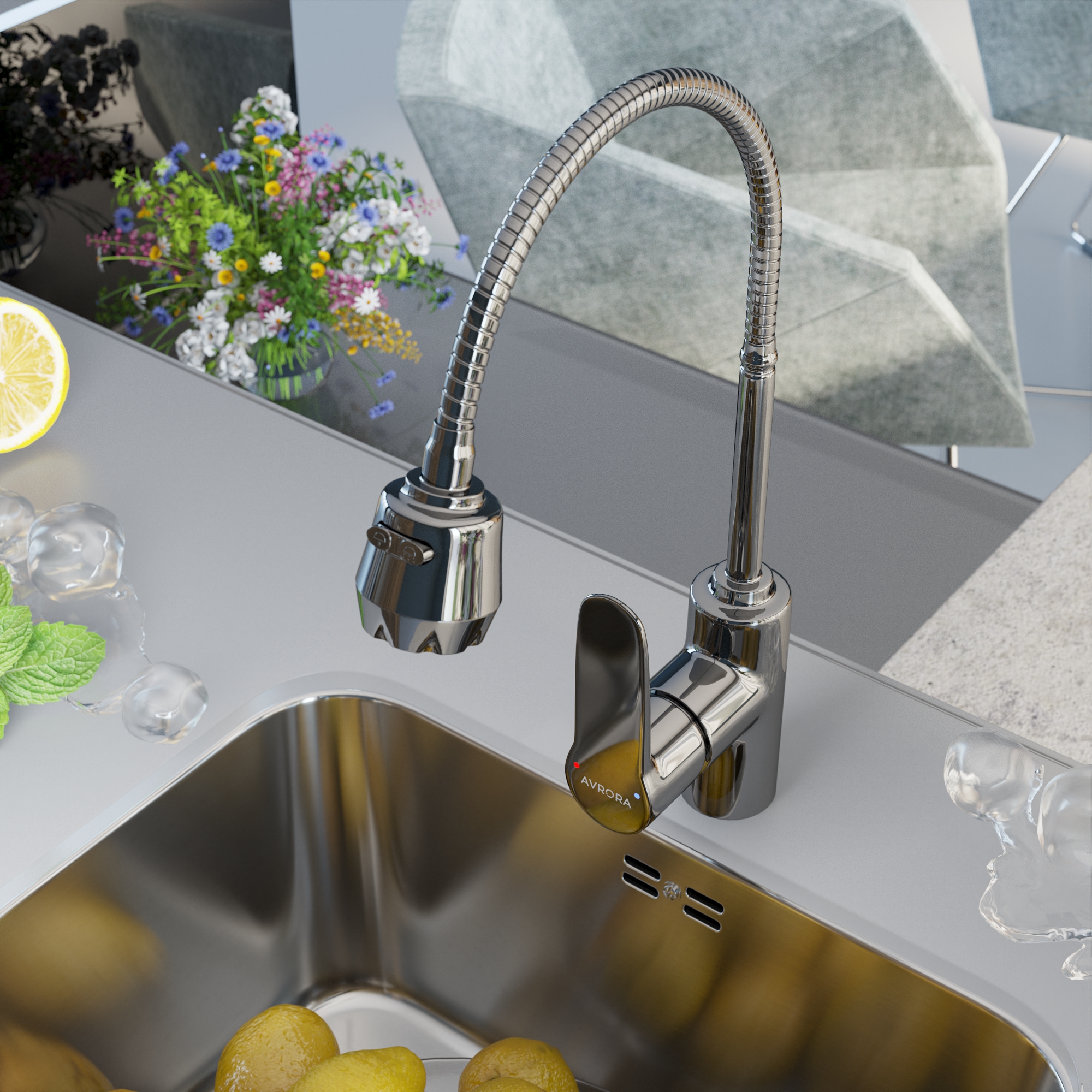 Смеситель для кухни AVRORA Kitchen AV9001 с высоким гибким изливом
