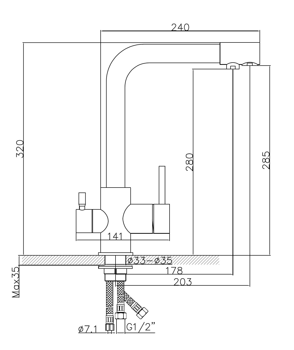 Смеситель для кухни AVRORA Kitchen AV9003 с подключением к фильтру питьевой воды