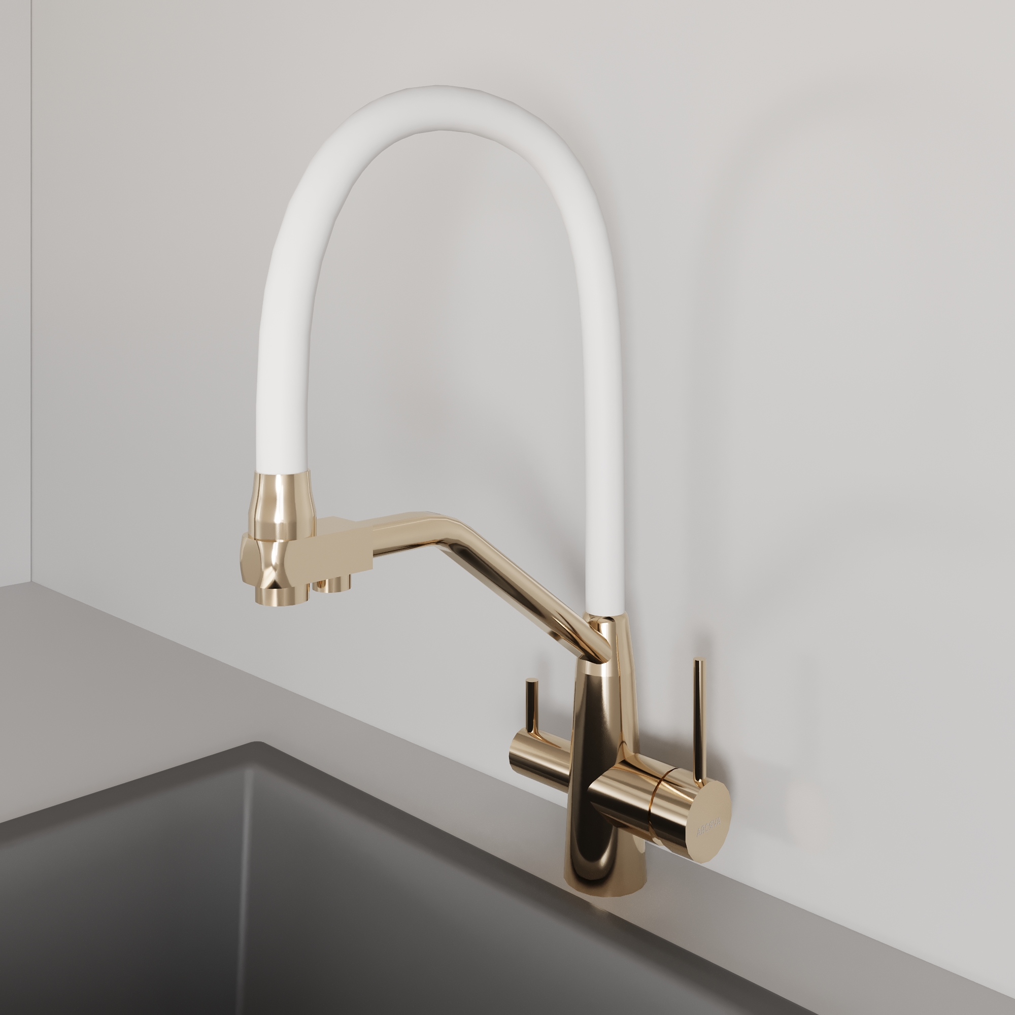 Смеситель для кухни AVRORA Kitchen AV9006Gold с высоким гибким изливом золото