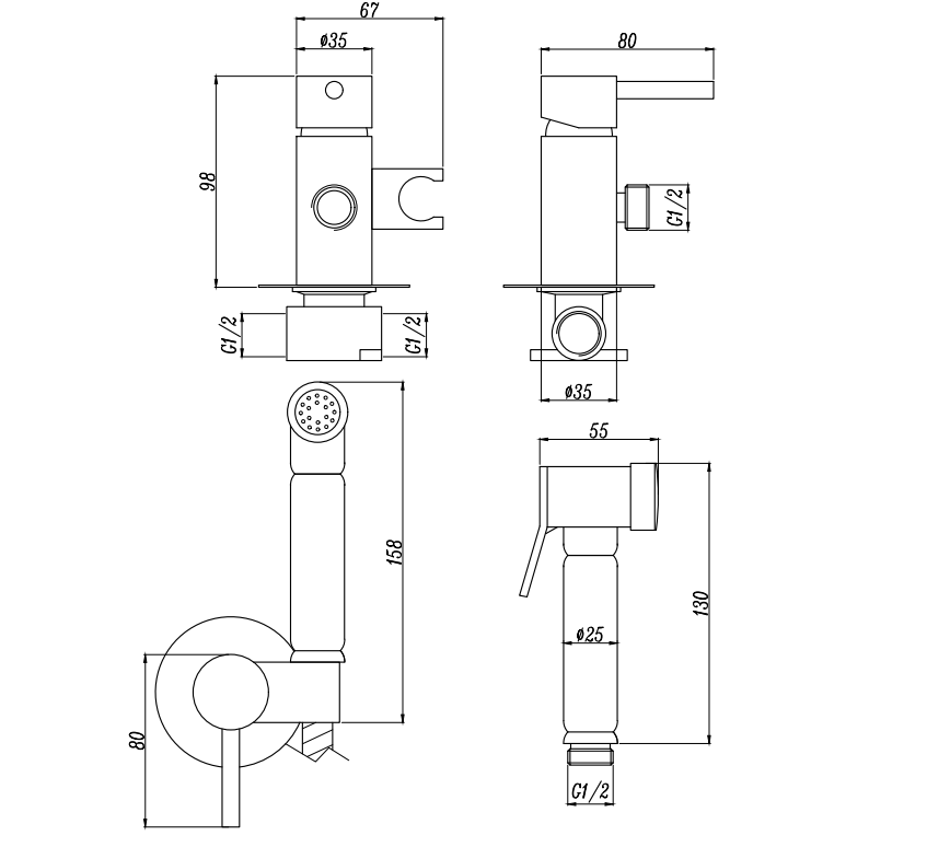 Смеситель гигенический AVRORA Moon AV3504 в матовом черном цвете