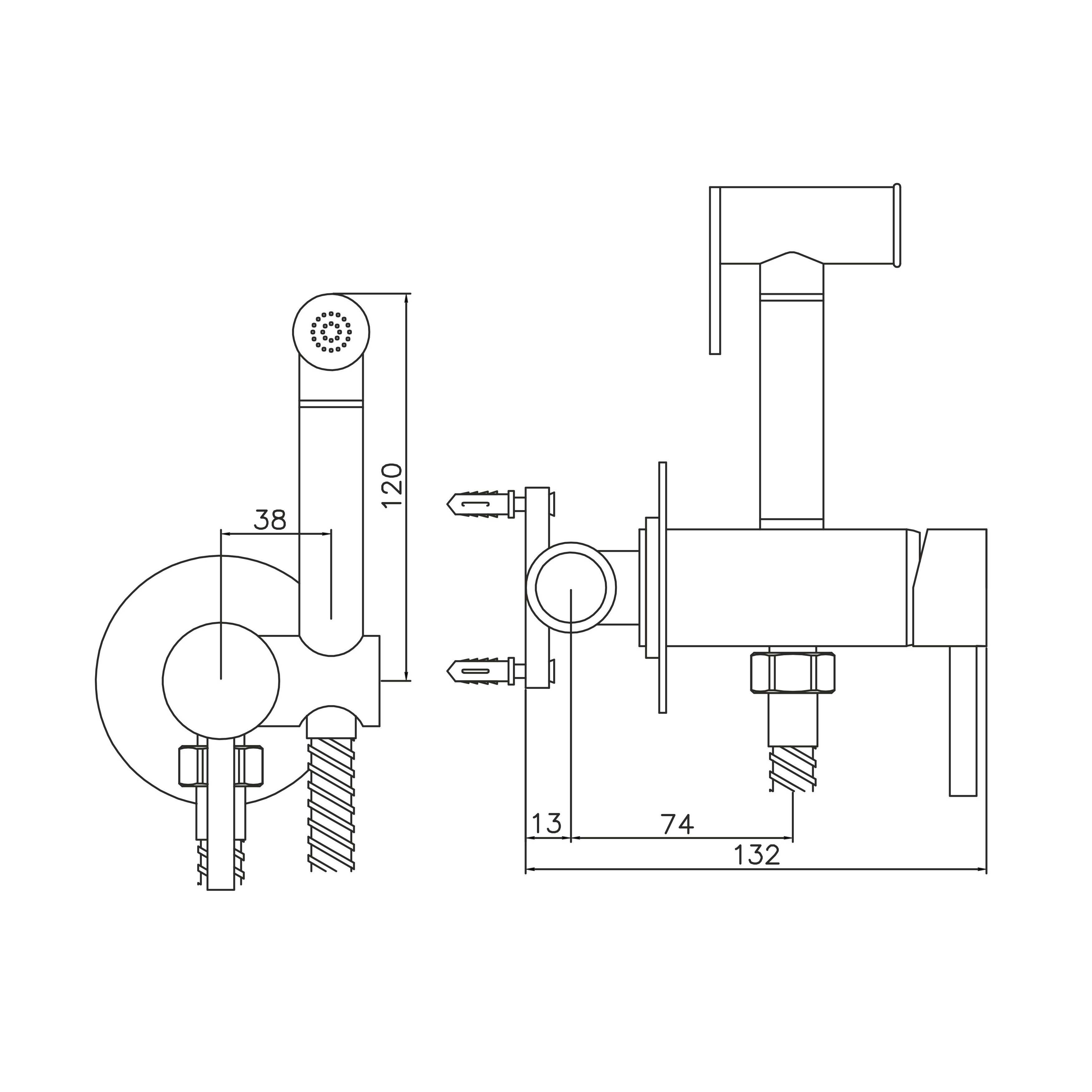 внутренняя часть, декоративный отражатель, душевой шланг, держатель для душа |